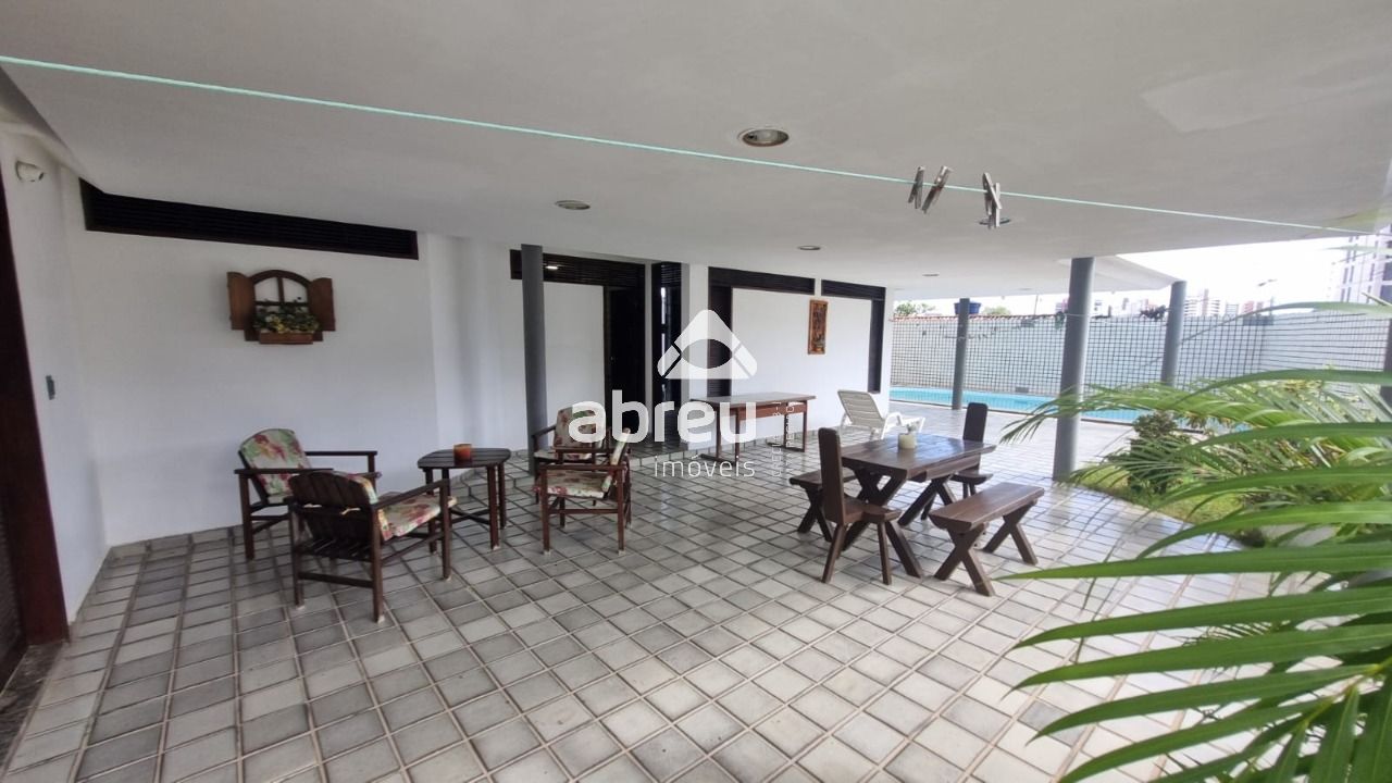 8 - Área de lazer com banheiro, pia em granito e churrasqueira.